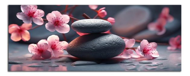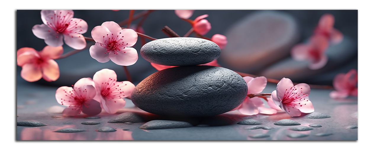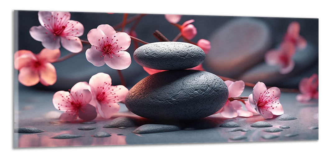 Kameny a růžové květy