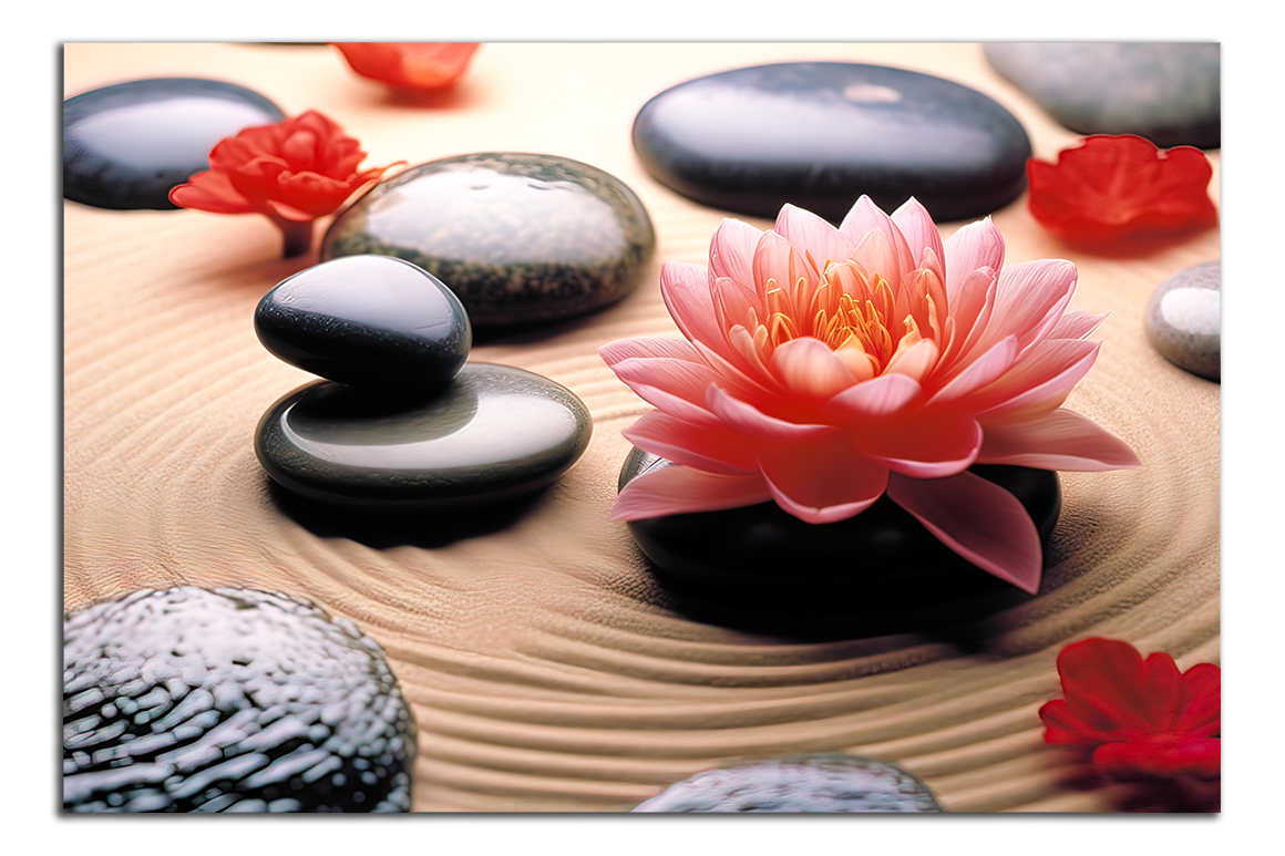 Květ a zen kameny
